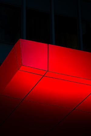 A beautiful bright red canopy covers the entryway to a Downtown Chicago skyscraper